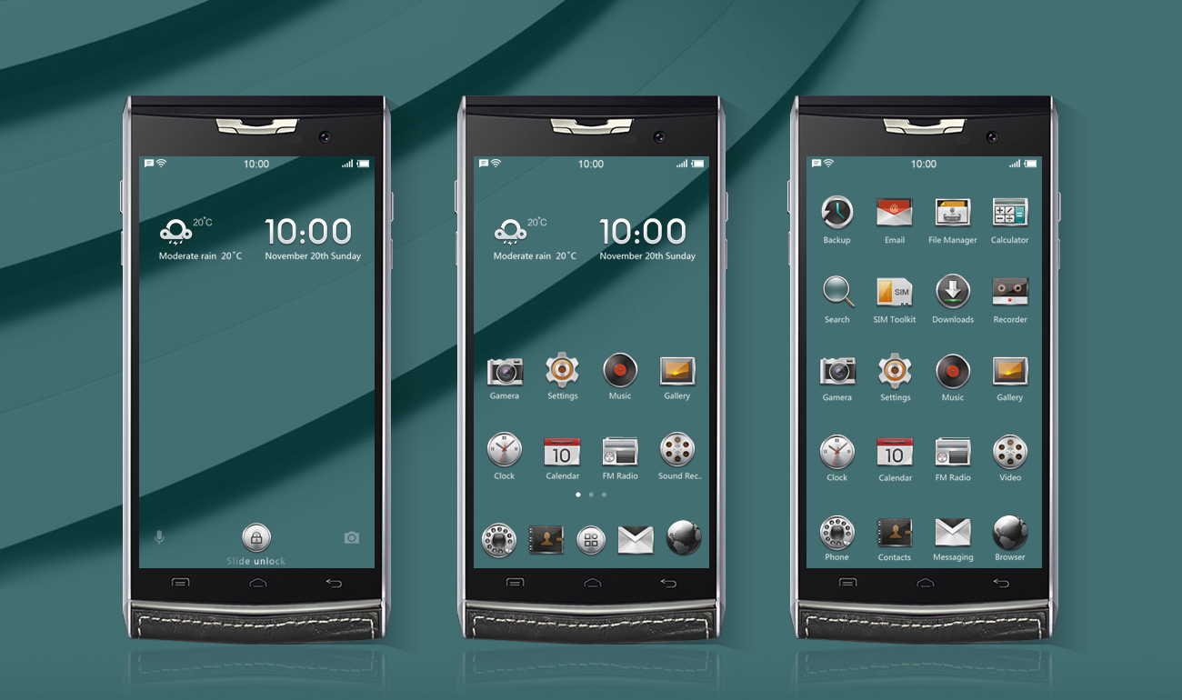 唯可可為DOOGEE T3深度定制設計了一 套輕奢簡潔華麗的界面。從前期視覺的探 索到產品的定位與概念設計,我們基于T 3的輕奢,獨特,雙屏、鋒銳的等等特性 ,展開了系列的概念發散。