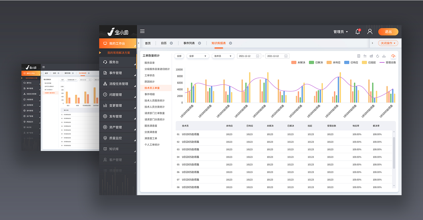 根據客戶的需求,結合品牌特色,以品牌中的橙色為中心延展色值,形成具有品牌特色和未來空間感的顏色搭配。考慮到界面中表單居多,在進行表單設計時采用單行線設計 ,用間隔區分列的關系,在整體界面顯示中表單在保證其區分性的同時也更加簡潔明了。柱狀圖的顏色搭配也較為柔和,在多色狀態中也不會讓使用者視覺疲勞。