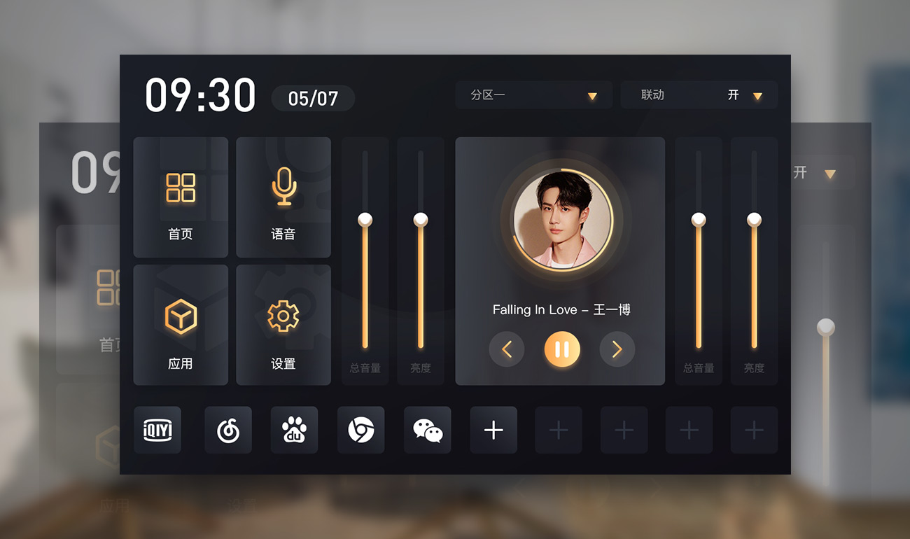 智能家居以輕便、簡潔的設計為主,將交互重新梳理歸納,使用戶在操作使用時可以更加快捷、更加方便的操作UI上的功能。將交互由深變淺,讓在家時間更長的老人、小孩也可以輕松操作智能家居系統。將用戶體驗與產品相結合,不斷提高交互合理性,保證用戶交互體驗良好性。