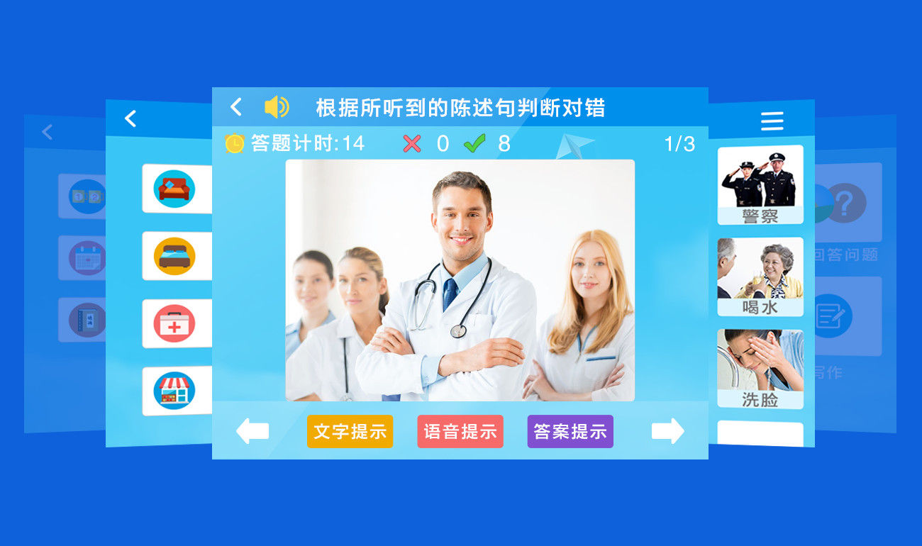 失語癥(aphasia)是獲得性語言障礙,指與語言功能有關(guān)的腦組織的器質(zhì)性損害造成患者對人類 進行交際的符號系統(tǒng)的理解和表達能力的損害,尤其是語音、語義、字形等語言符號的理解和表達 障礙。前提是患者神志清醒,無感覺缺失(聽覺、視覺),無發(fā)音器官的功能受損。通過系統(tǒng)全面 的語言評定發(fā)現(xiàn)患者是否有失語癥及程度,鑒別各類失語,了解各種影響患者交流能力的因素,評 定患者殘存的交流能力,制訂治療計劃。通過對語言功能進行訓練,從而達到康復的目的。唯可可 根據(jù)客戶需求,針對老年用戶習慣重新定義系統(tǒng)UI.