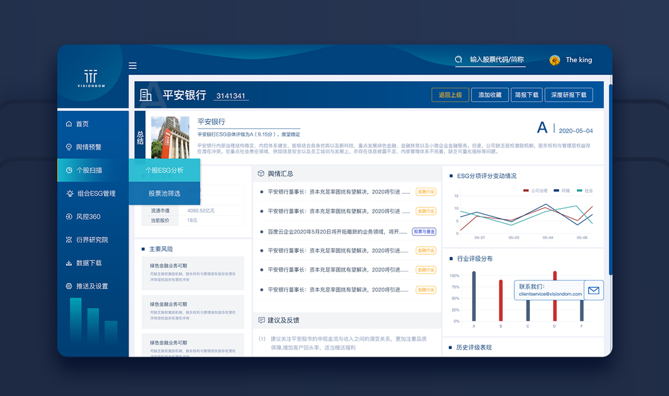 為客戶提供好的產(chǎn)品和技術(shù)支持、健全的售后服務(wù),主要經(jīng)營(yíng)企業(yè)管理咨詢,經(jīng)濟(jì)信息咨詢,網(wǎng)絡(luò)平臺(tái)的技術(shù)開發(fā)。在該平臺(tái)中可以訂閱企業(yè)的各項(xiàng)信息,平臺(tái)提高數(shù)據(jù)分析企業(yè)投資風(fēng)險(xiǎn)。用戶可以選擇以組合的形式訂閱企業(yè)信息,平臺(tái)將企業(yè)風(fēng)險(xiǎn)按照ESG標(biāo)準(zhǔn)分類,讓用戶更加直觀的感受到該企業(yè)的經(jīng)濟(jì)價(jià)值。