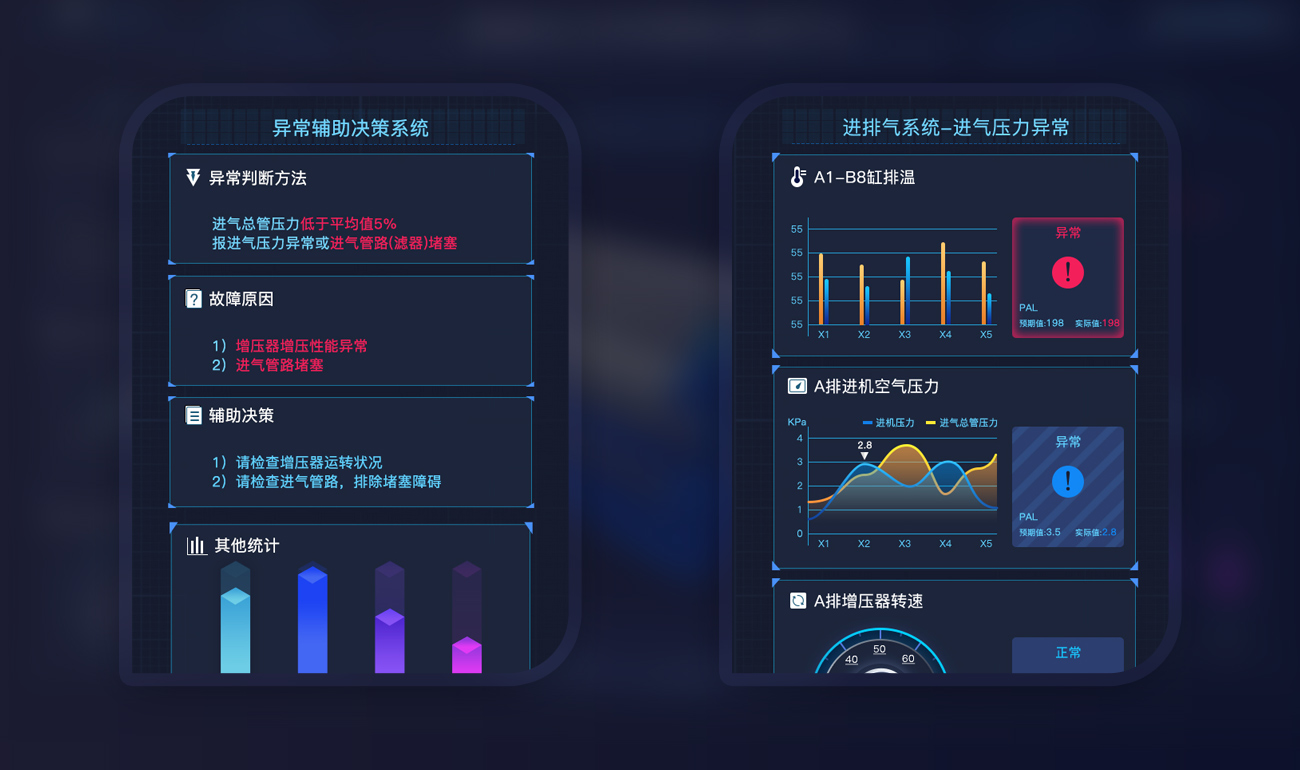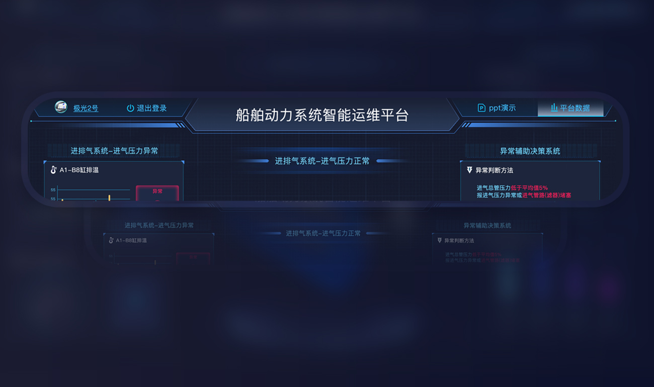 科技藍色作為主色調,偏紫色系的藍賦予了界面神秘感,使用漸變光線、調整不透明度塑造科技效果。整體界面采用統一色彩,保證界面風格統一,同時添加少量視覺跳躍感大的輔助色以增加畫面活力,區分正常狀態。采用邊角實化豐富界面細節。用漸變背景作為提示文字背景,讓提示文字更好的融入整體界面中,不會使界面元素突兀。